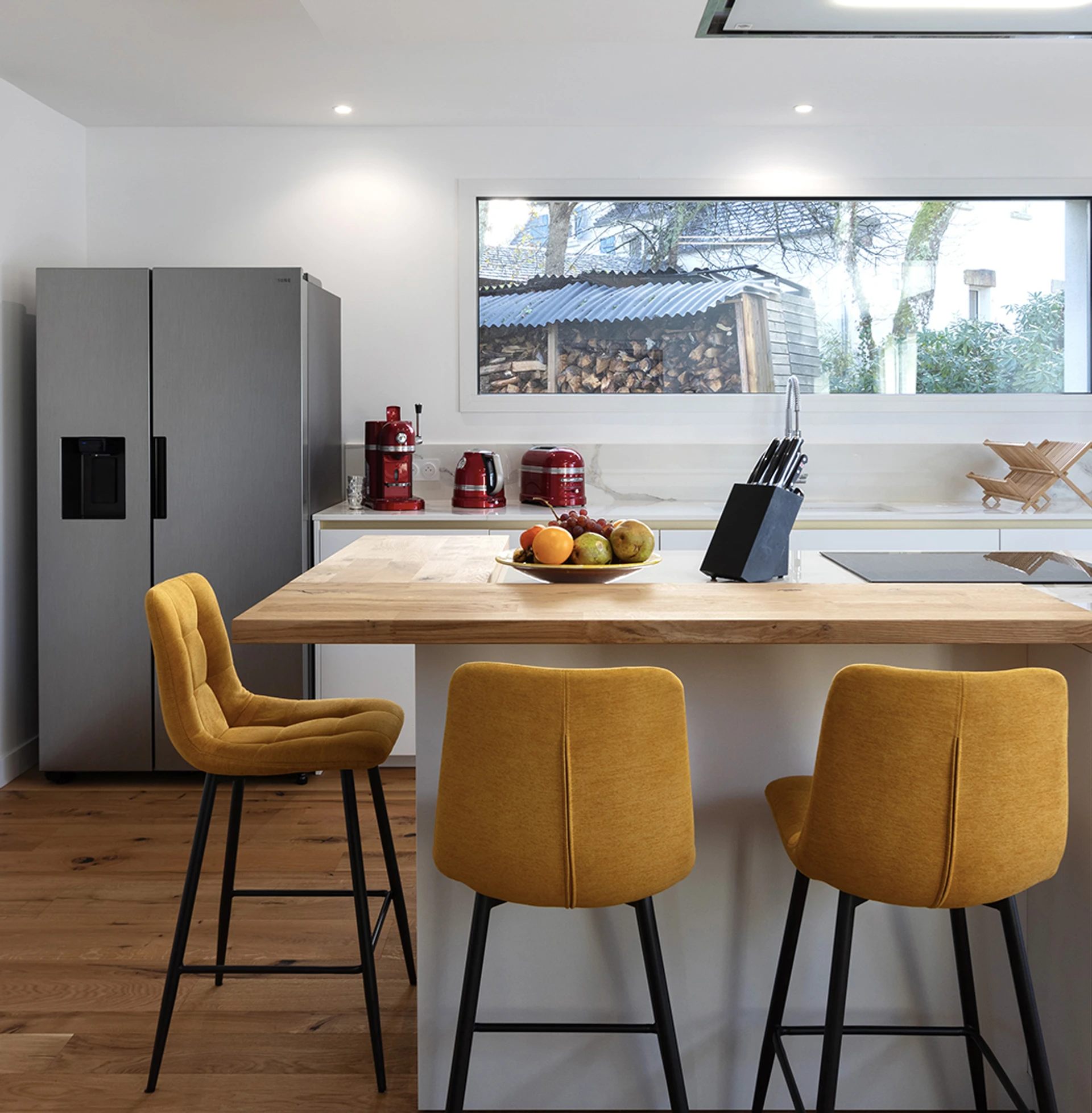 Je me déplace à domicile pour des rendez-vous personnalisés et j'interviens dans divers domaines tels que la conception de cuisines, de salles de bain, de dressings, ainsi que pour la rénovation intérieure complète.