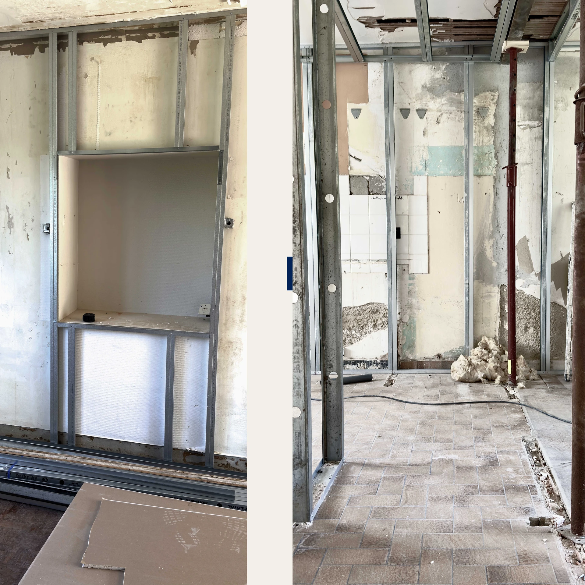 - Dépose de l’ancienne cuisine, cloisonnement intérieur et sols